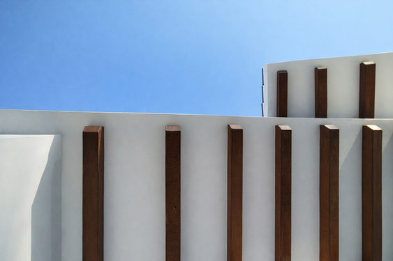 Este proyecto presenta una villa contemporánea de una sola planta inspirada en los principios de la arquitectura vernácula mediterránea. La volumetría se compone de cuerpos de líneas limpias, acabados en revoco blanco, apoyados sobre un zócalo de piedra oscura que refuerza la horizontalidad y genera un contraste material elegante. Una cubierta inclinada de trazo dinámico, con amplios voladizos, define la silueta del edificio, mientras que las vigas de madera vistas aportan calidez y ritmo tanto en los aleros exteriores como en los techos interiores.